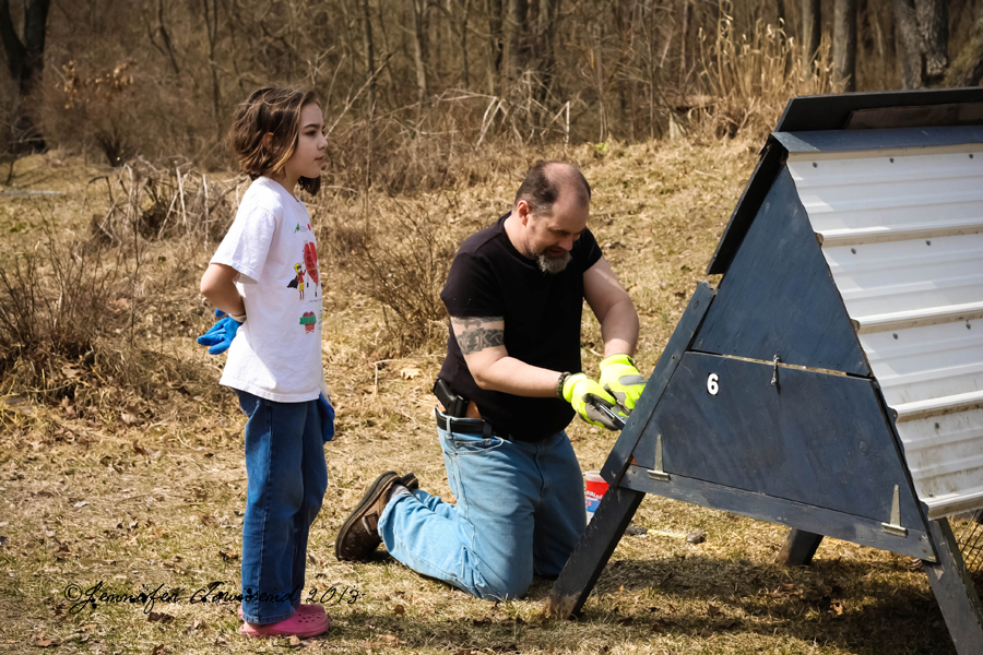 In addition to our cleaning up the garden, the Mister did some work on the small A-Frame coop for the Littles, who will be turned loose outside in a few weeks when they’re big enough. I’ll be happy when that happens. We’re up to some crazy number like 20 (chicken) chicks and 4 turkey chicks.