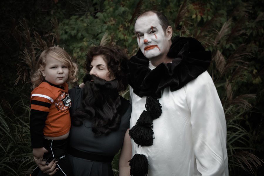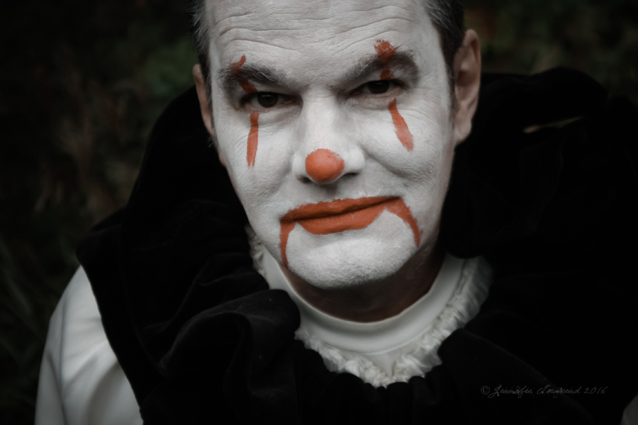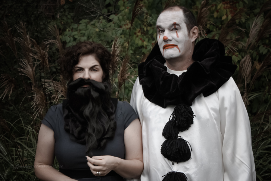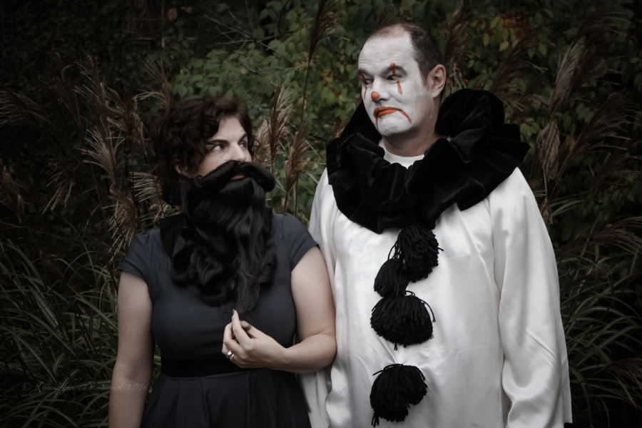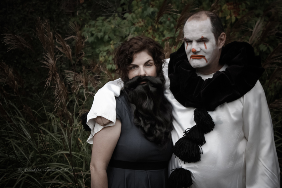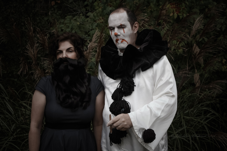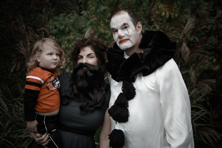 The 14th – and it just gets better every year. Stormageddon is terrified of the Mister since he shaved his beard off to put on the Pagliacci makeup – you can see he’s keeping a close eye on him. Hilarious. Miss W wasn’t home, which is the only reason she’s not making an appearance in our outtakes. (Quote from Geek Love by Katherine Dunn, which is a fantastic book, so check it out if you haven’t read it.)