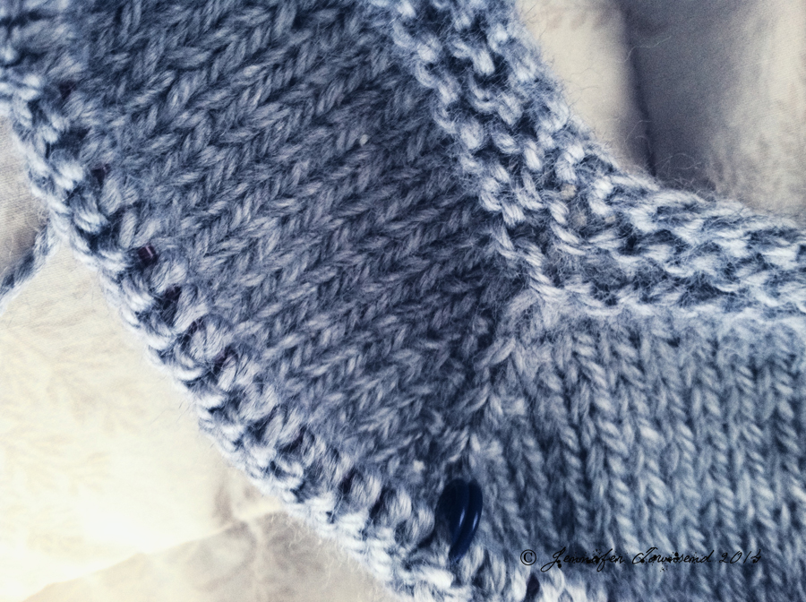 This was a really quick knit. It would have been faster but I did the button bands twice because I wasn’t happy. I also had issues with the sleeves. I extended them to full length. I also didn’t like the way the garter cuff was knitting up, so I knitted that bit inside out and folded it back to create a stockinette cuff instead.