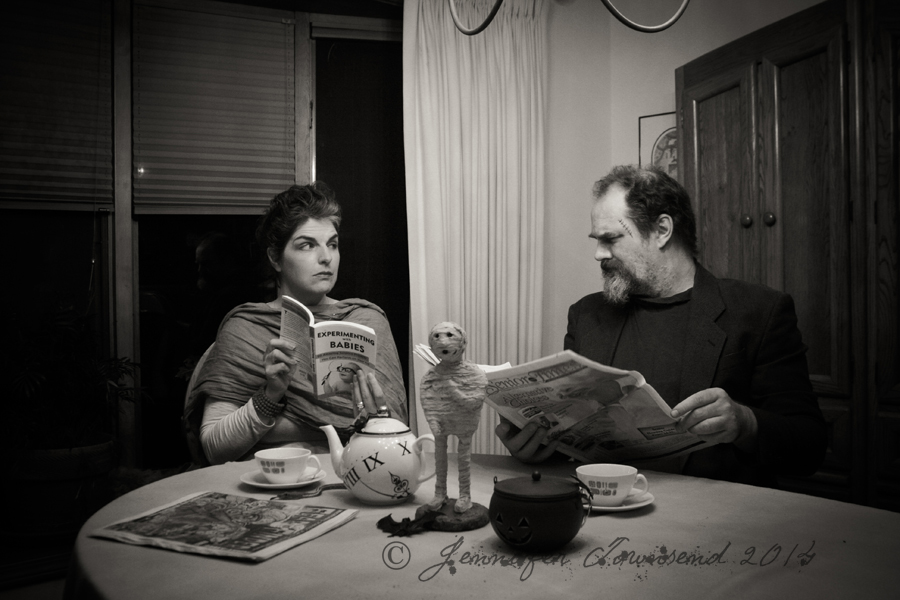 We’re a tad behind schedule with the annual anniversary shot this year. Some of you might have been nervous. Pish. Like I’d miss a Hallowversary shot. I do wonder why I don’t seem to own a flannel shirt though. Had to borrow one from the Mister. If you can’t guess the inspiration for this year’s portrait, you clearly do not love this holiday.